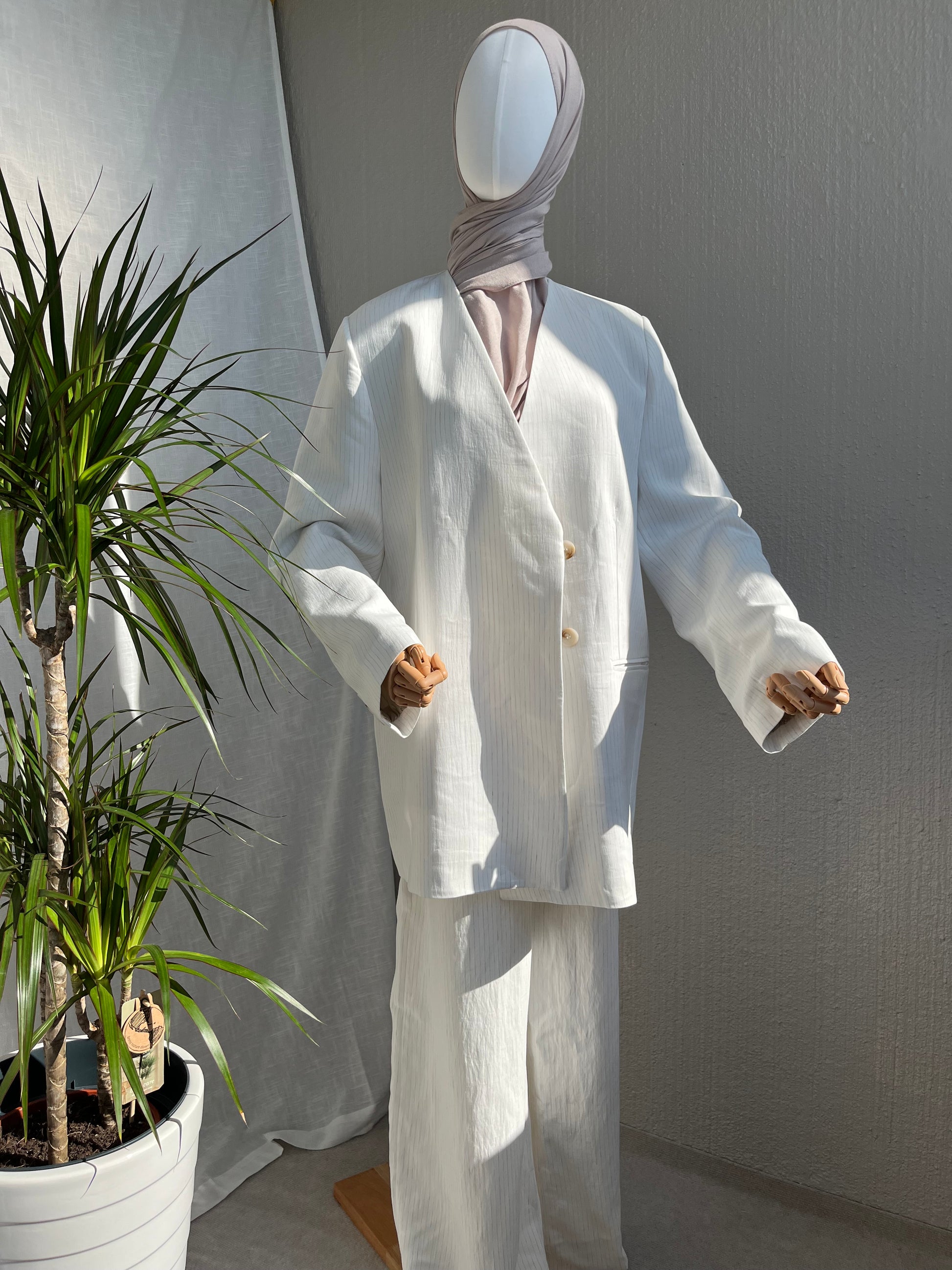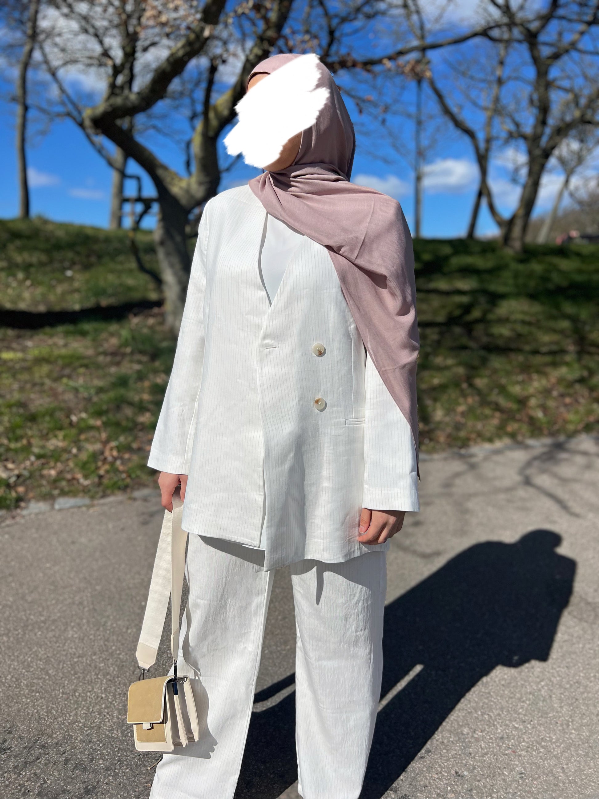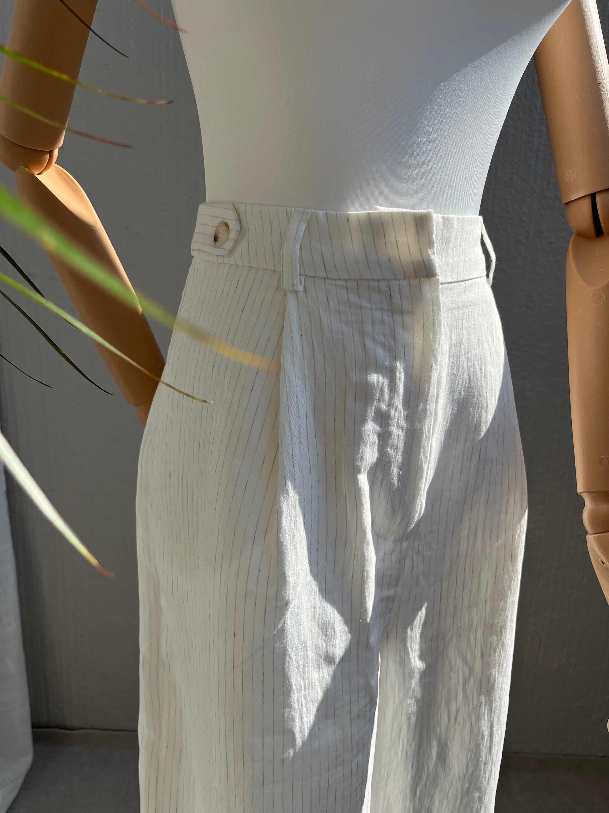 Dessa luftiga och snygga byxor matchar perfekt med vår Siena kavaj för en komplett och stilren look. Byxorna har en rak passform och är långa för en elegant siluett. Den fina knappdetaljen ger ett extra lyft till designen, och de inbyggda banden gör det möjligt att sätta på ett bälte. Ett perfekt val för en avslappnad men samtidigt sofistikerad stil.