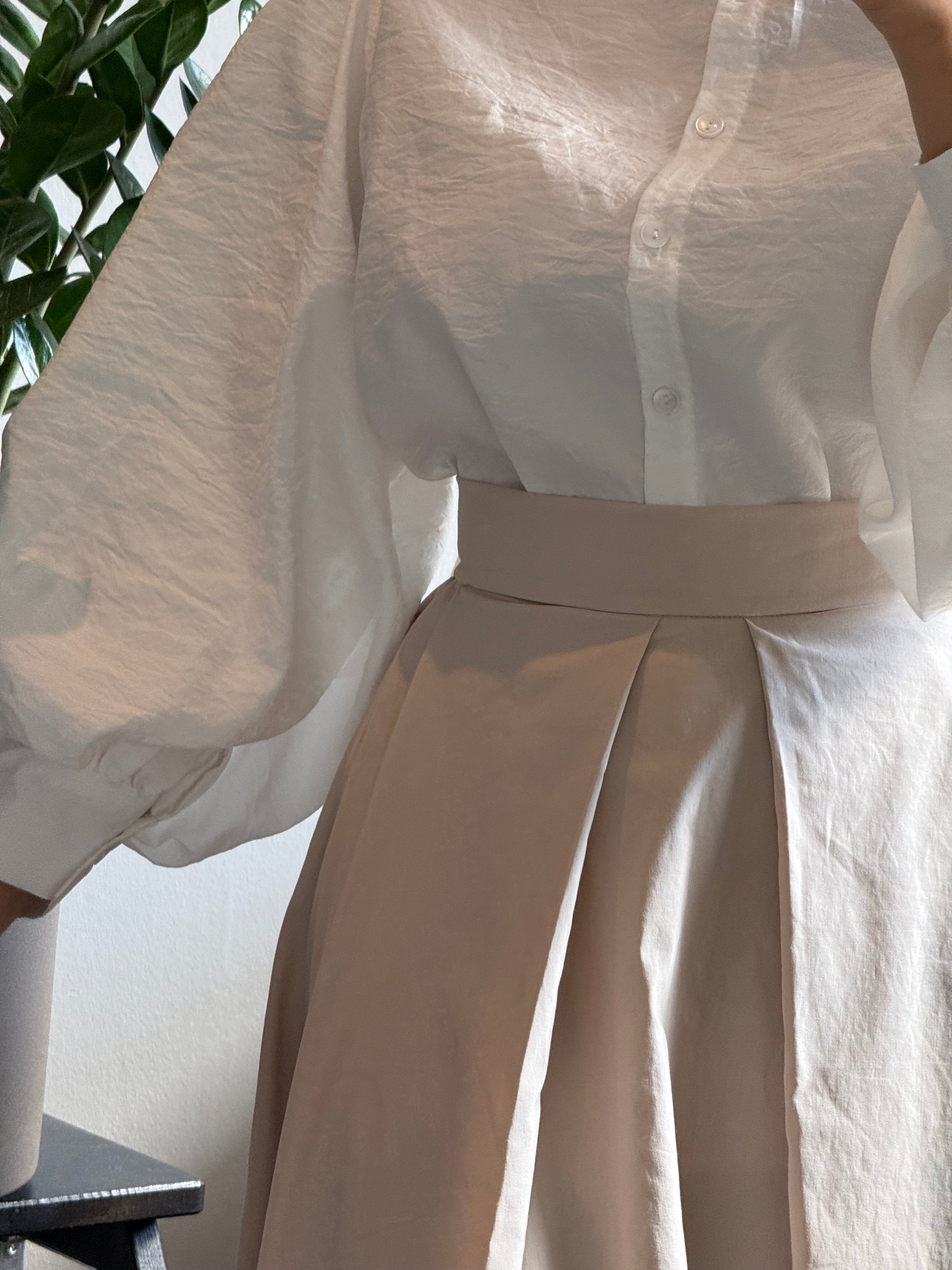 En kjol för dig som älskar stillsam elegans. Elara skirt har en veckad A-linjeform som faller som en dröm från midjan och ned. Det lätt styva men naturliga bomullstyget ger ett vackert fall och feminin form! Diskret blixtlåst på baksidan.